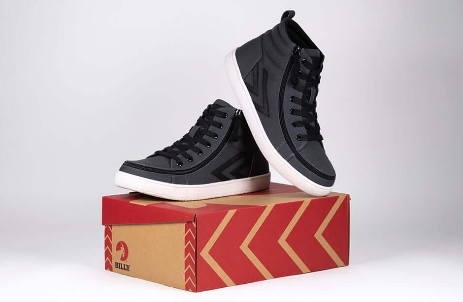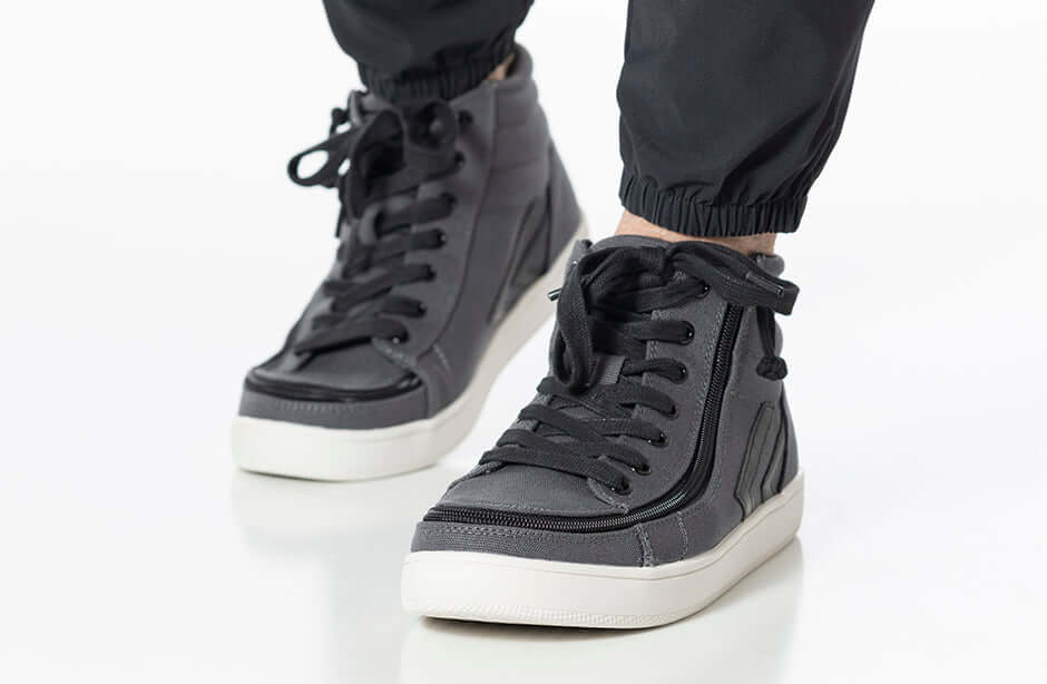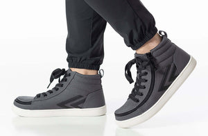 Inspired by a core-skate look, the Men's Charcoal/Black BILLY CS 1.0 Sneaker High Tops are sure to deliver. These trending kicks embrace nostalgia, yet remain true to current style. Coming with functional laces for a custom fit, removable insoles for added depth, and a wraparound zipper for unmatched convenience, youre going to feel good when you Step In!