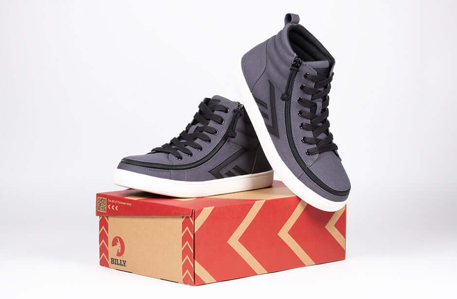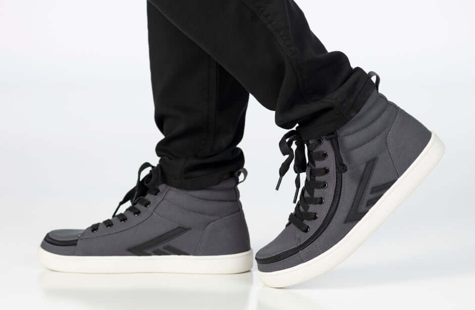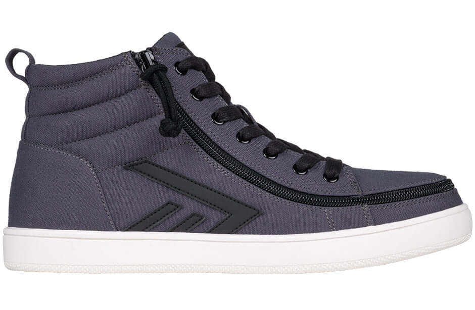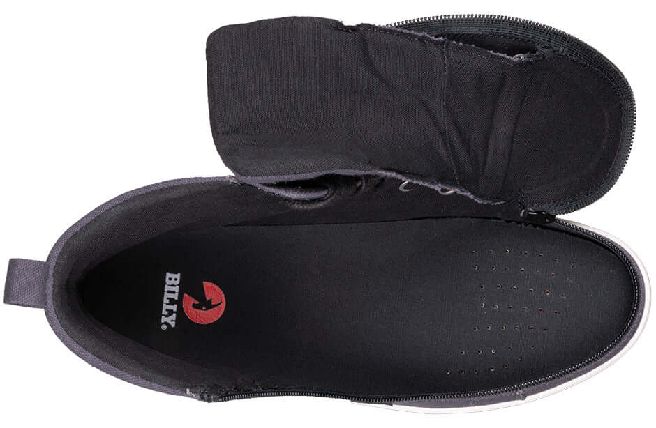 Inspired by a core-skate look, the Men's Charcoal/Black BILLY CS High Tops are sure to deliver. These trending kicks embrace nostalgia, yet remain true to current style. Coming with functional laces for a custom fit, removable insoles for added depth, and a wraparound zipper for unmatched convenience, you're going to feel good when you Step In!