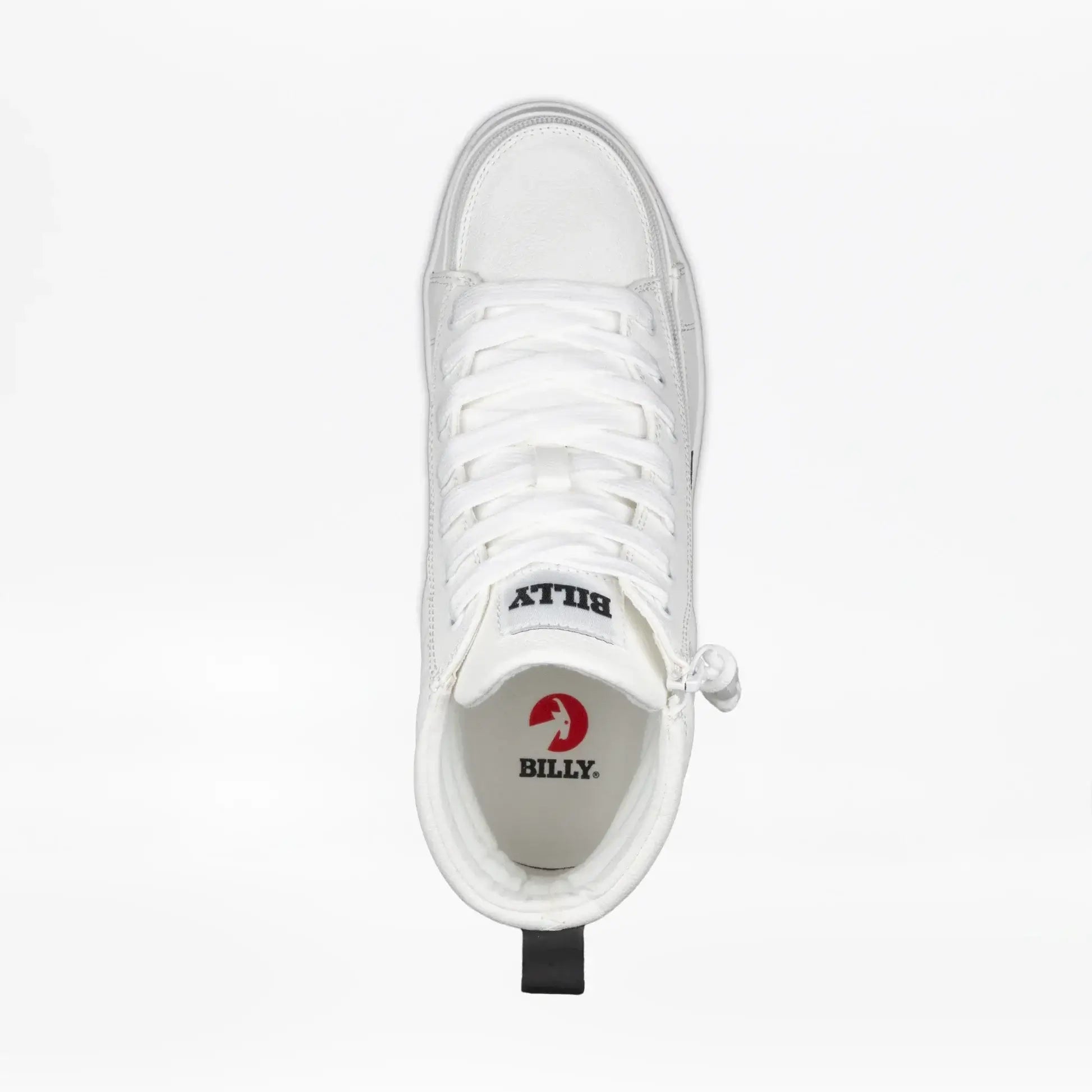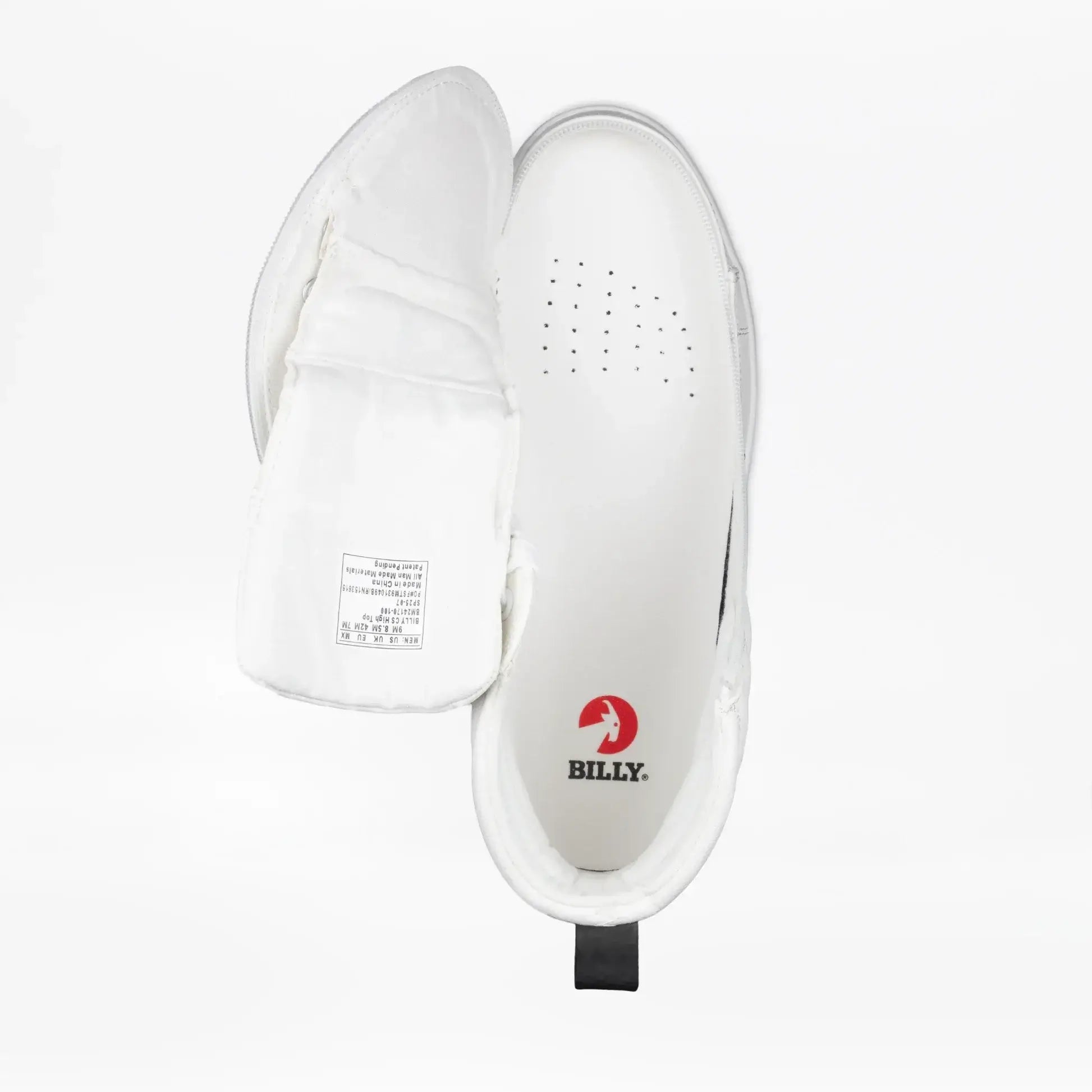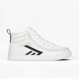 Inspired by a core-skate look, the Men's White/Black BILLY CS High Tops are sure to deliver. These trending kicks embrace nostalgia, yet remain true to current style. Coming with functional laces for a custom fit, removable insoles for added depth, and a wraparound zipper for unmatched convenience, youre going to feel good when you Step In!