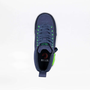 Featuring a bold navy and green design with a goat graphic that lights up as you walk, these shoes combine standout style with playful functionality. Complete with a thick knit fabric lining and removable insoles for adjustable support, the Navy/Green Light Ups BILLY Classic D|R High Top AFO-Friendly shoes are built to shine all day long!