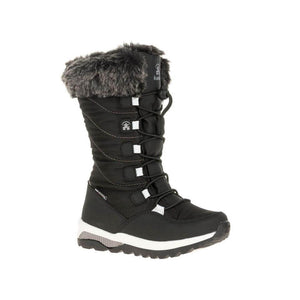 Protective enough for winters on the plains, Kamik Prairie winter boots boast a distinctly urban look. Featuring Kamiks DriDefense waterproof membranes, these girls snow boots are guaranteed to keep socks dry. NiteRays reflective patches improve their safety when theyre walking home after dark. And an Easy-Grab Lace Lock helps your sanity when youre late to get out the door.