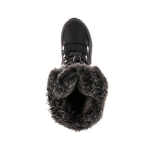 €¢ Waterproof nylon upper with faux fur snow collar and gusset tongue